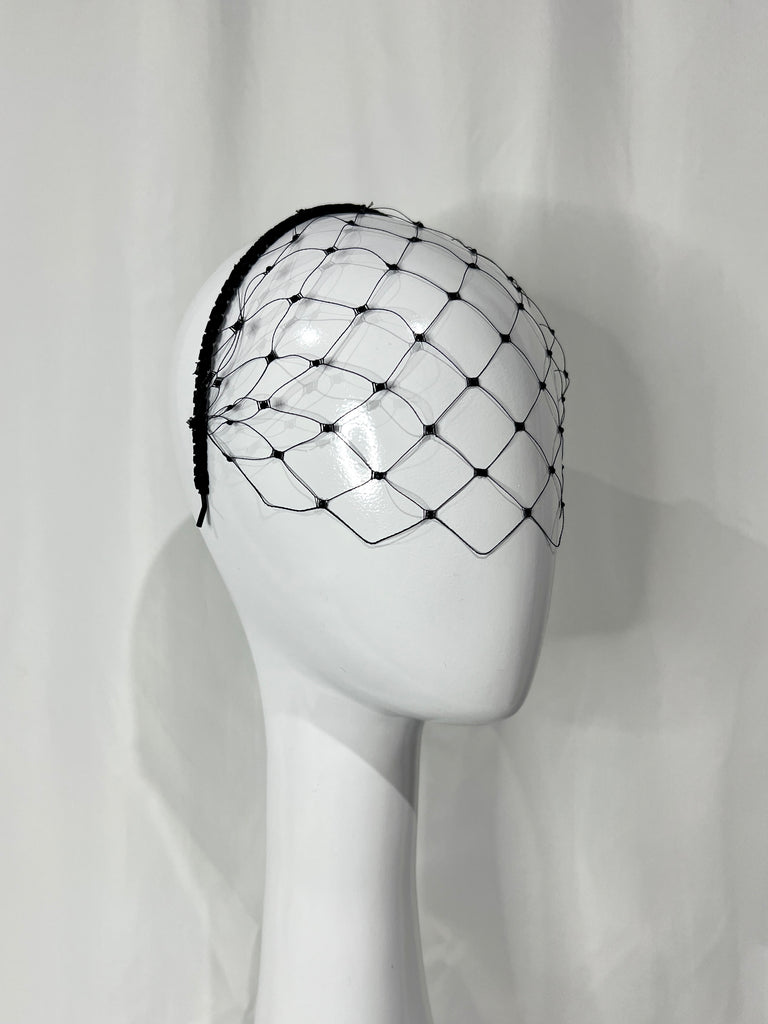Black Sparkle Veil - Elegant simplicity, black veil and velvet wrapped headband finished with jet black crystals.